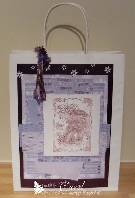 "Specialising in Digital & Rubber stamps for every scene." You can win a $ 15 Gift Certificate that you can use in the store. ******This week sketch is made by Sandra, it's fabulous again!! This weeks twist is so much fun:Use a bag and use the sketch on it (no cards allowed this time).Team the Snow Angels made again some lovely samples for you to get inspired. Here they come: De sketch van deze week is gemaakt door Sandra, helemaal top weer!! Deze week hebben we een ontzettend leuke twist:gebruik de schets op een papieren cadeautas (er mogen dit keer geen kaarten worden ingezonden)De meiden van team The Snow Angels hebben weer prachtige voorbeelden gemaaktHier komen ze: Sandra: